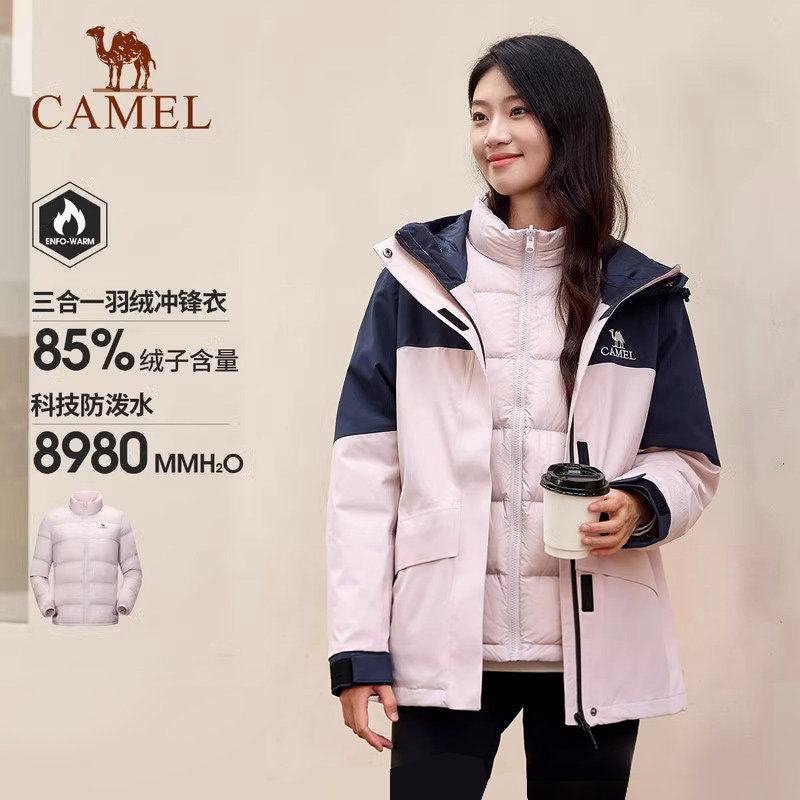 Camel outdoor down jacket winter women's men's waterproof windproof warm thickened clip down jacket
