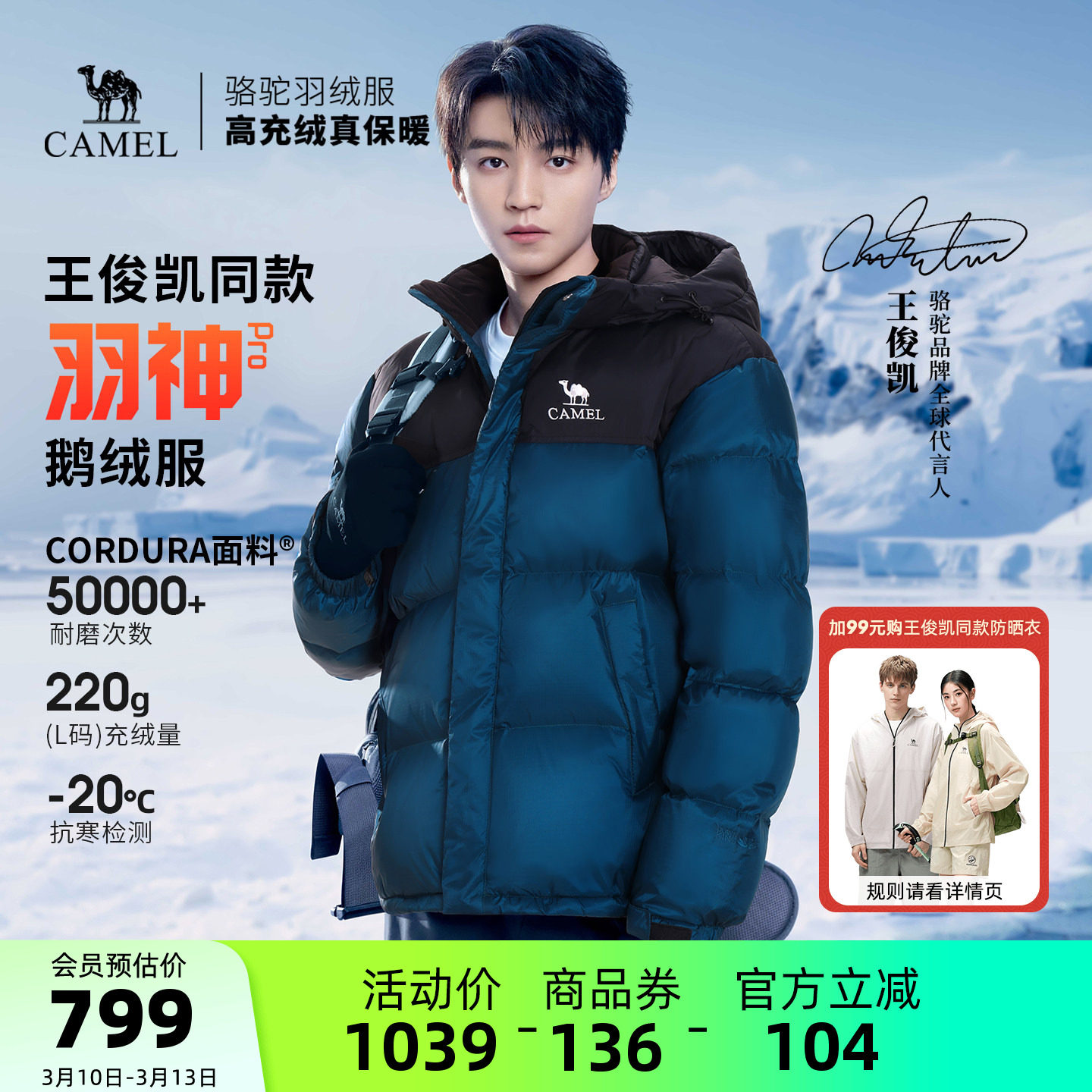 [Wang Junkai same style] Camel Yushen PRO outdoor down jacket new men's and women's goose down jacket star is the same style