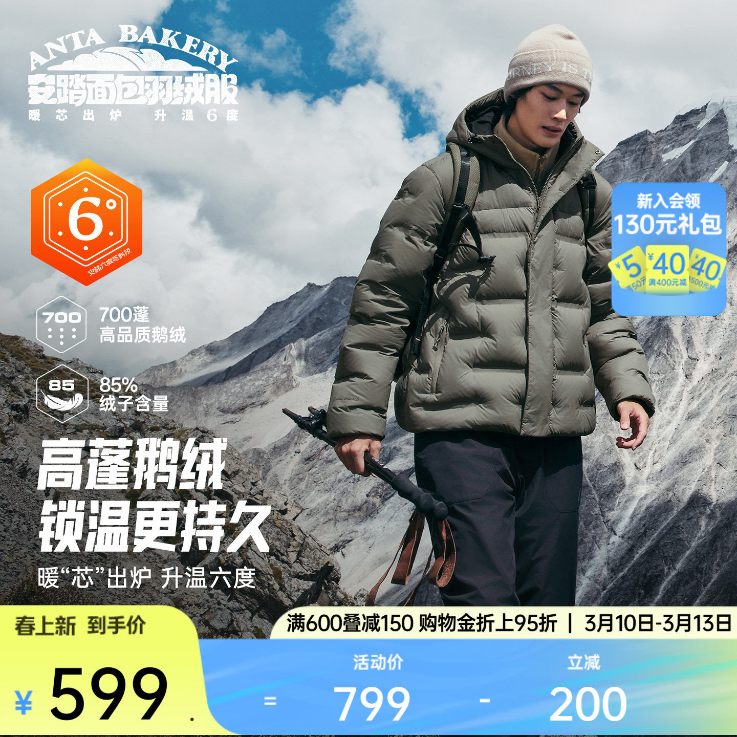 【Fan Zhendong's same style】Anta Bread Down丨Six-degree core goose down jacket men's warm cotton jacket