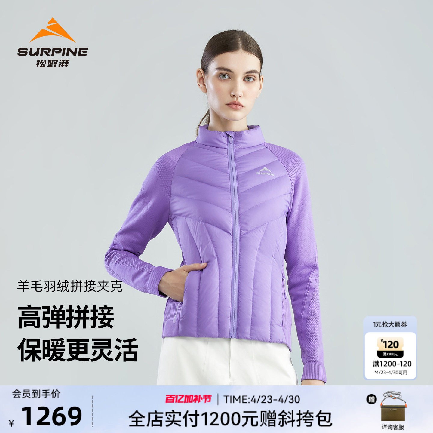 SURPINE Matsuno Pamerino wool knit down liner mid-layer women's warm ski jacket goose down
