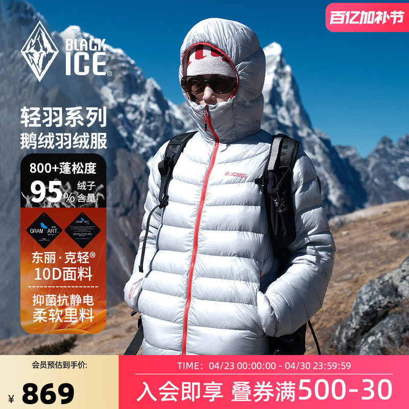 Black ice outdoor rib down jacket 900 puff lightweight goose down jacket liner men's hooded warmth 8604
