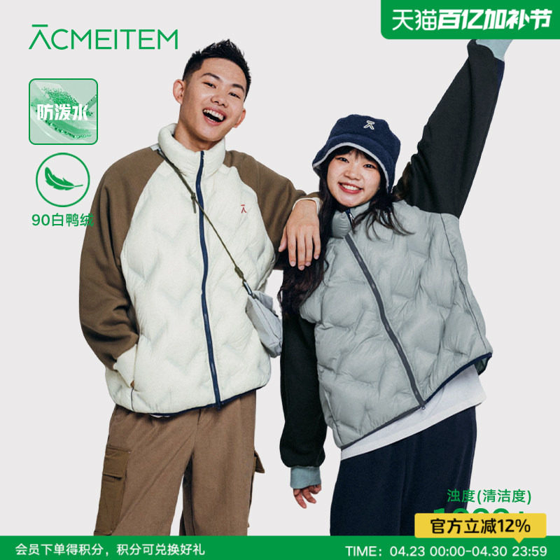 ACMEITEM, outdoor spliced stand-up collar down jacket, lightweight water-repellent loose down jacket for men and women