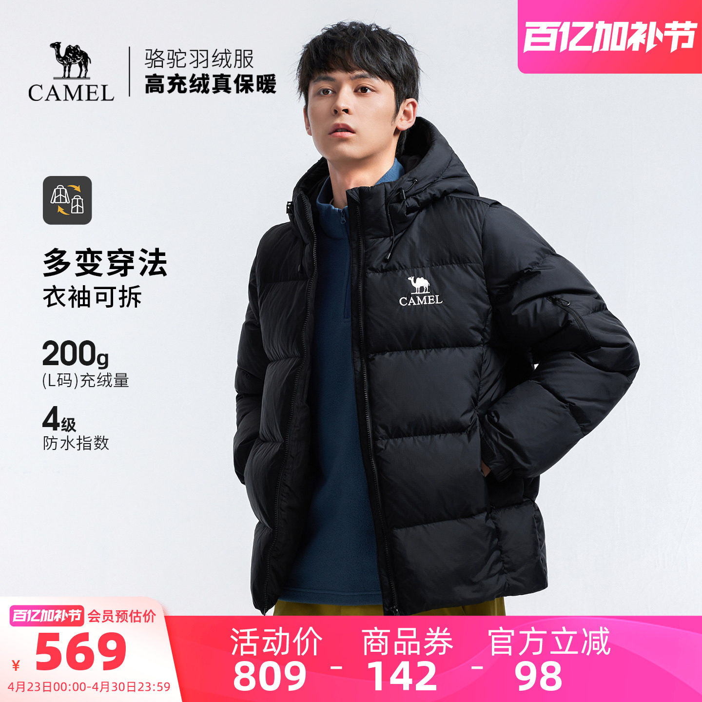 Camel outdoor down jacket winter new women's men's sleeve detachable water-repellent high canopy warm bread jacket