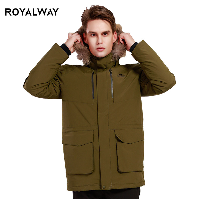 Royalway Temples mid-length down jacket - goose down soft fur collar technology heat storage