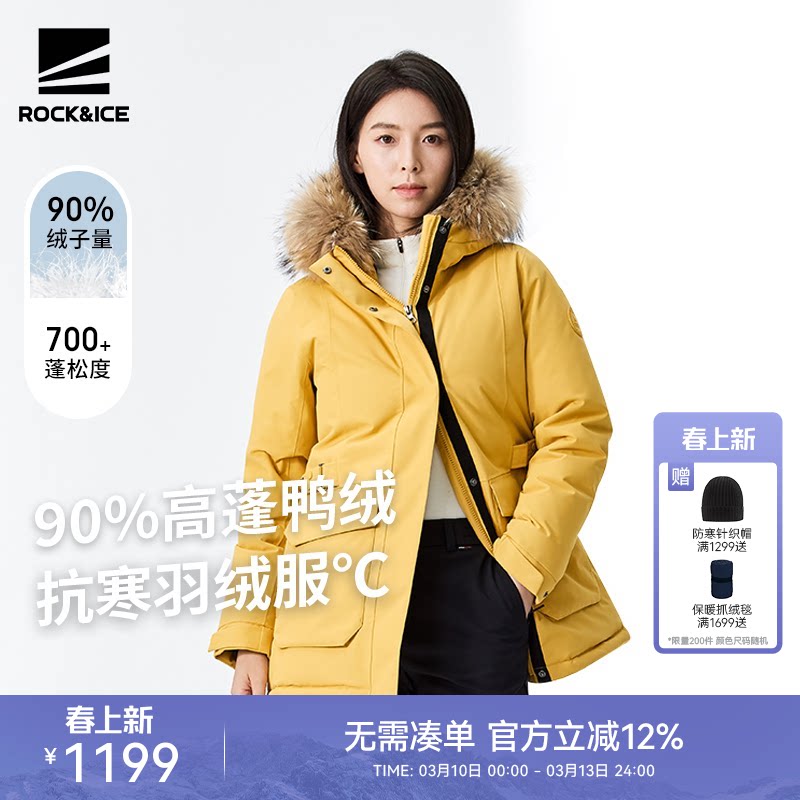 ROCKICE down jacket women's winter new mid-length jacket outdoor thickening warmth windproof waterproof pie overcome