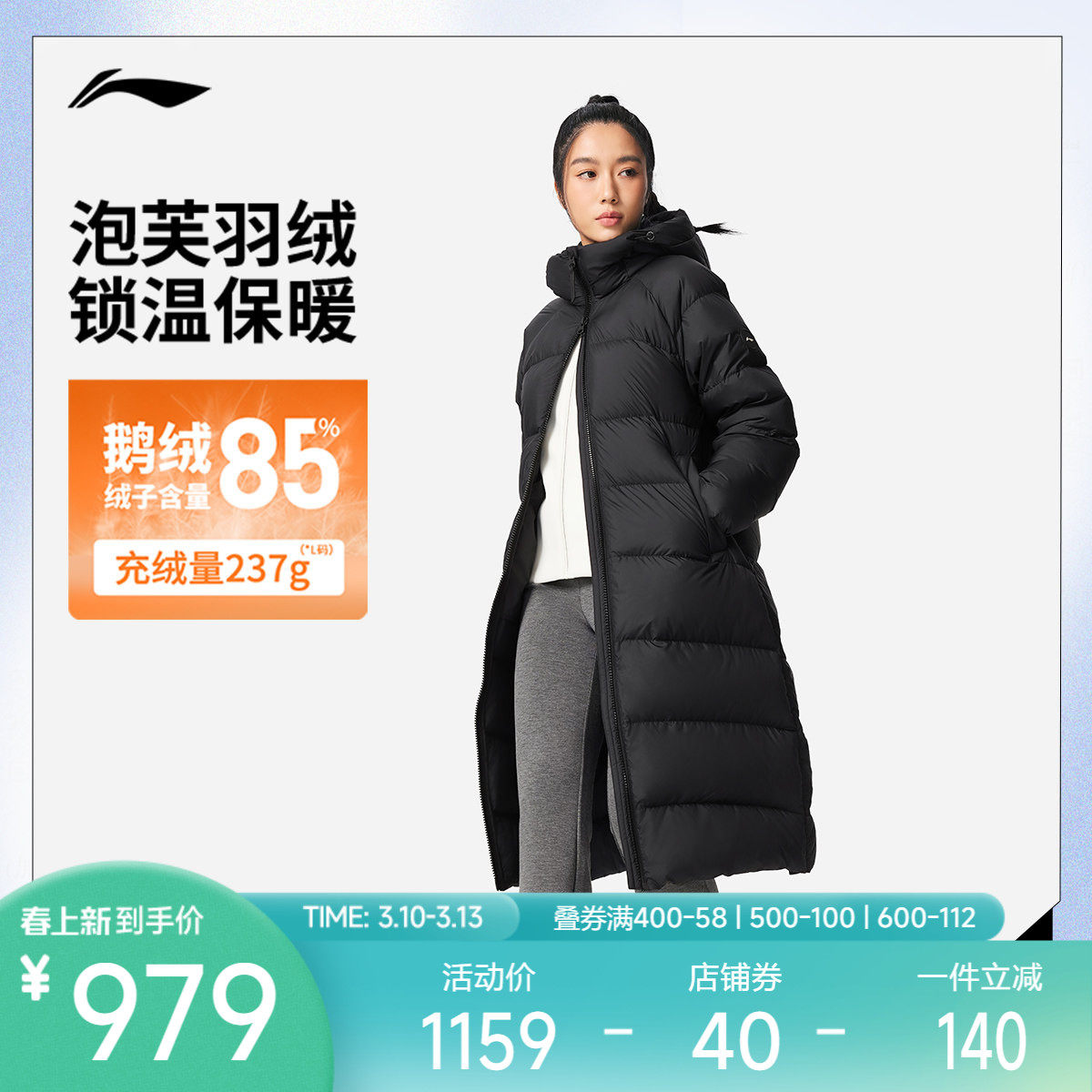 Li Ning Down Jacket Fitness Series|Women's windproof and warm and comfortable loose goose down long down jacket