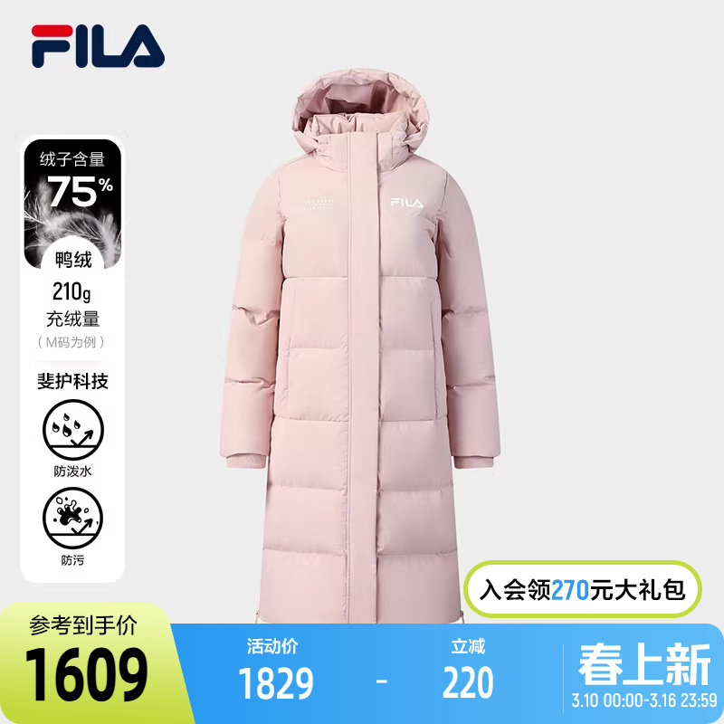 FILA Official Women's Long Down Jacket 2025 Winter New Stylish Casual Warm Hooded Jacket