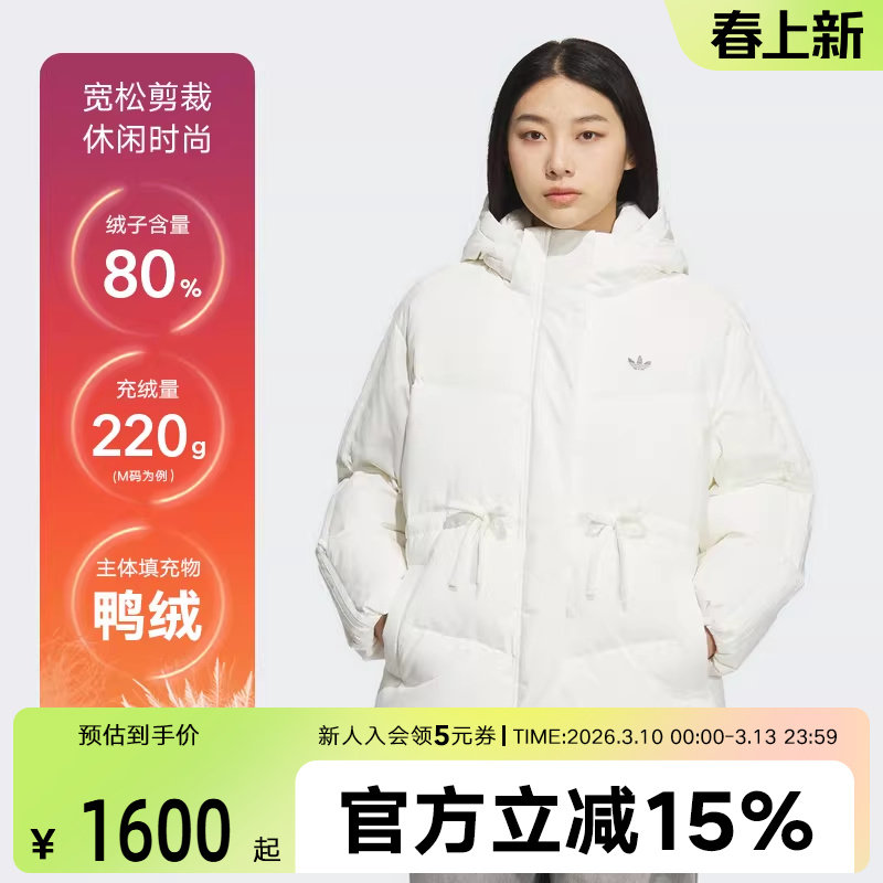 adidas Clover New Warm Sports Waist Hooded Women's Midlength Down Jacket KF3685