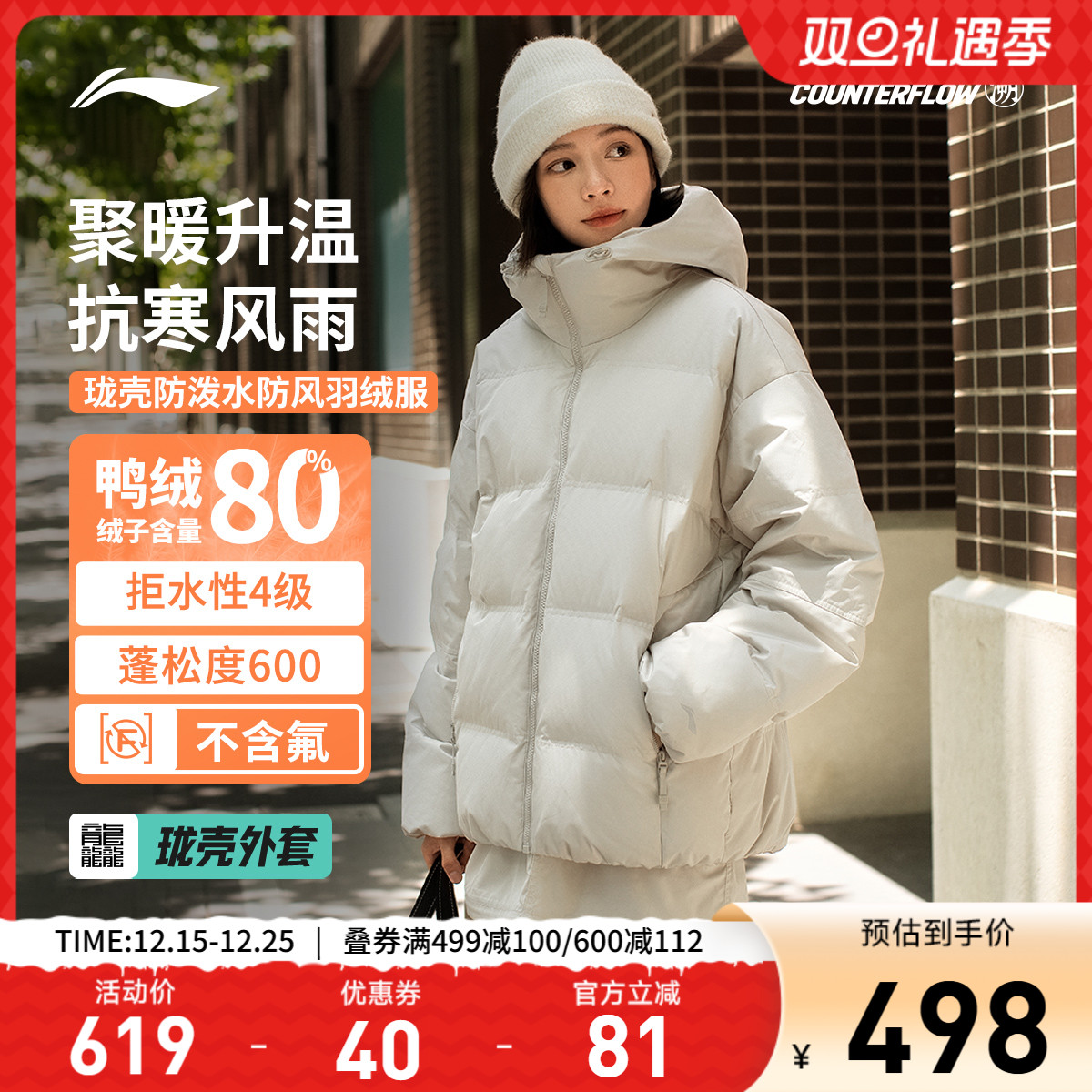 Li Ning outdoor CF trace|Long shell down jacket short women's hooded loose autumn and winter warm duck down sportswear