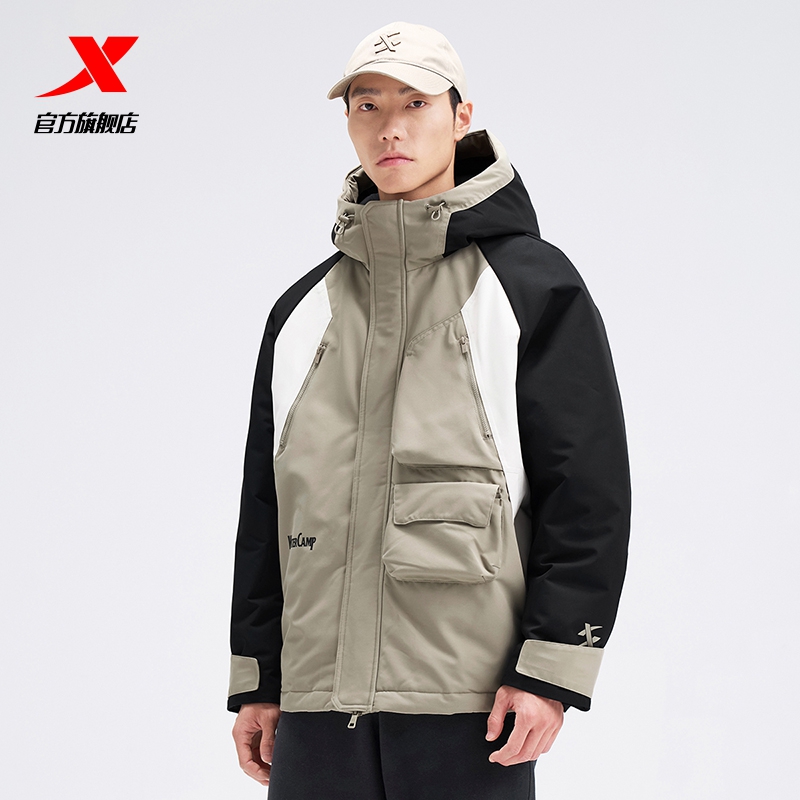 Xtep thick cotton suit men's autumn and winter trend color-blocking new fleece thickened warm jacket 976429180479