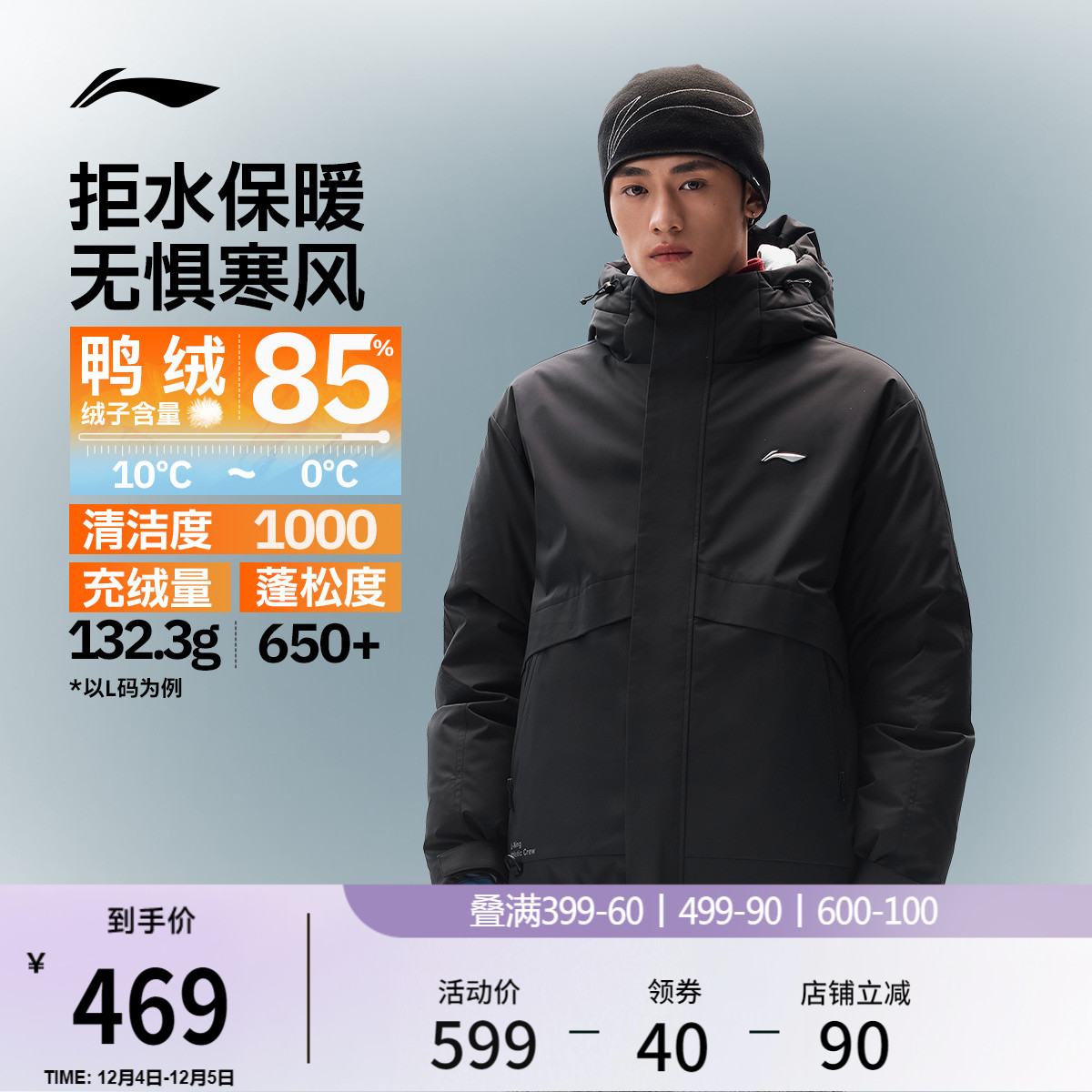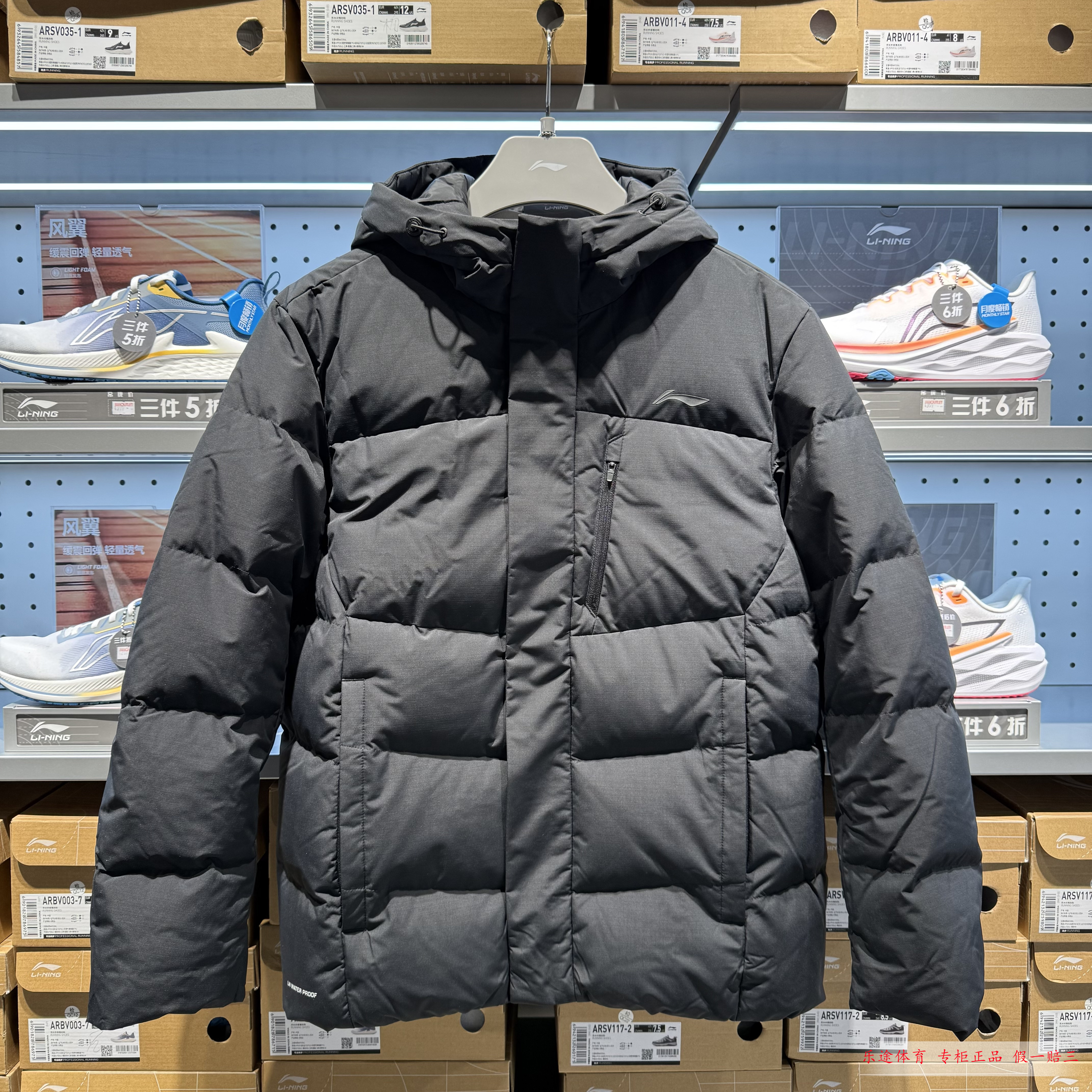 Li Ning Down Jacket 2025 Winter New Men's Warm and Water-Repellent Hooded Duck Down Jacket AYMV153