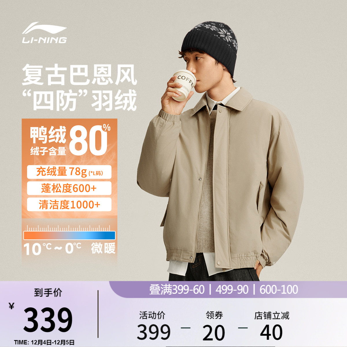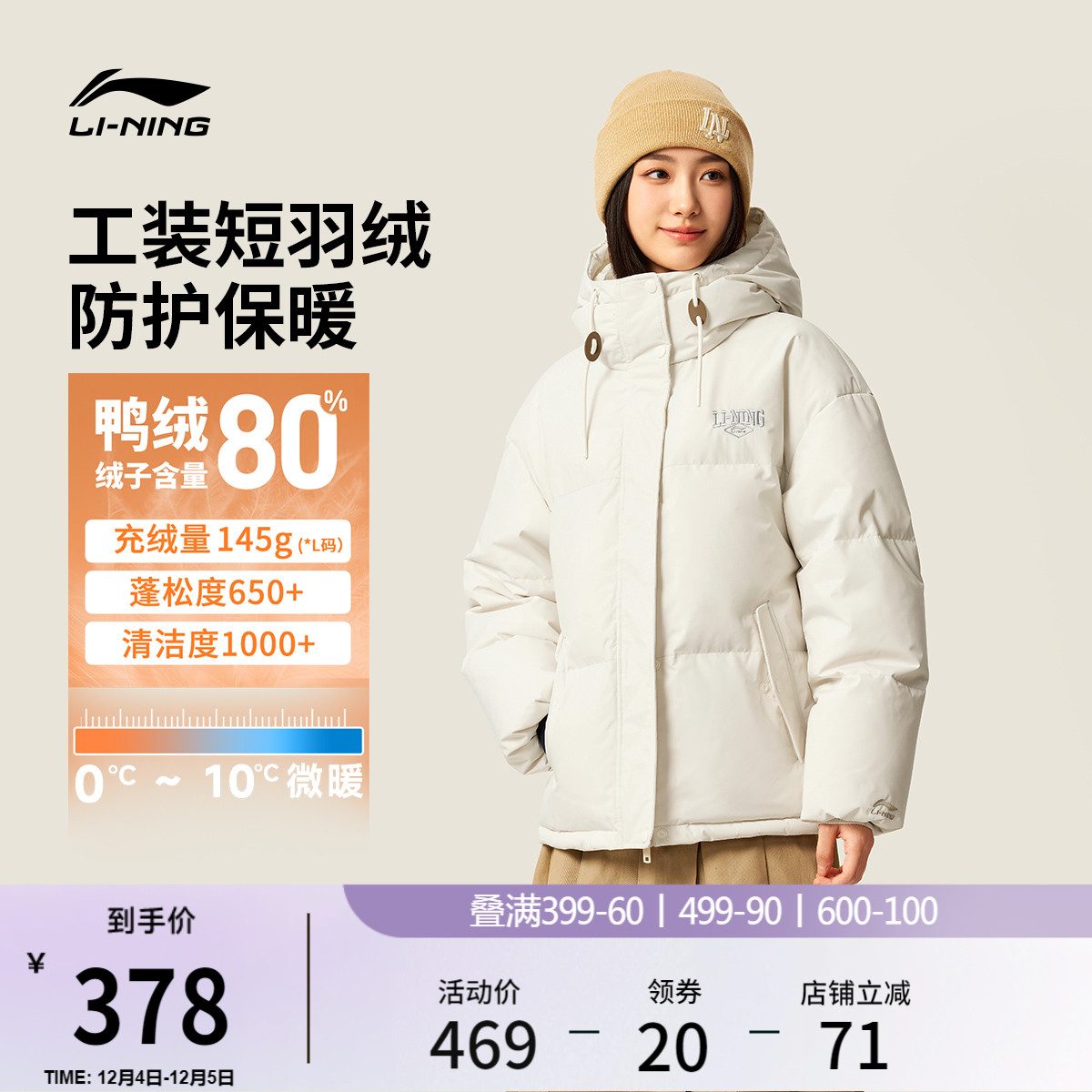 Li Ning hot pot down jacket丨Men's winter short duck down clothes couple barn-style jacket warm lapel jacket