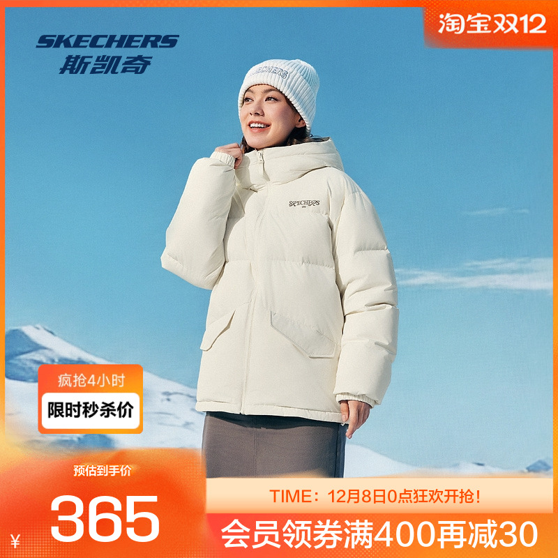 Skechers winter unisex couple hooded jacket warm, windproof and water-repellent sports fashion cropped down jacket