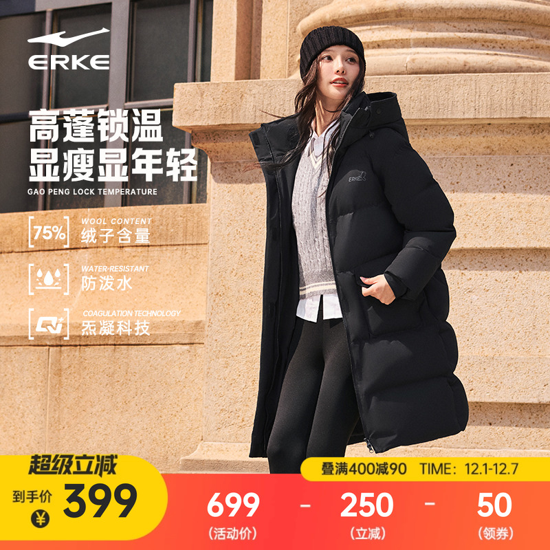 Hongxing Erke long down jacket women's new winter women's mid-length style good-looking cotton jacket black coat jacket