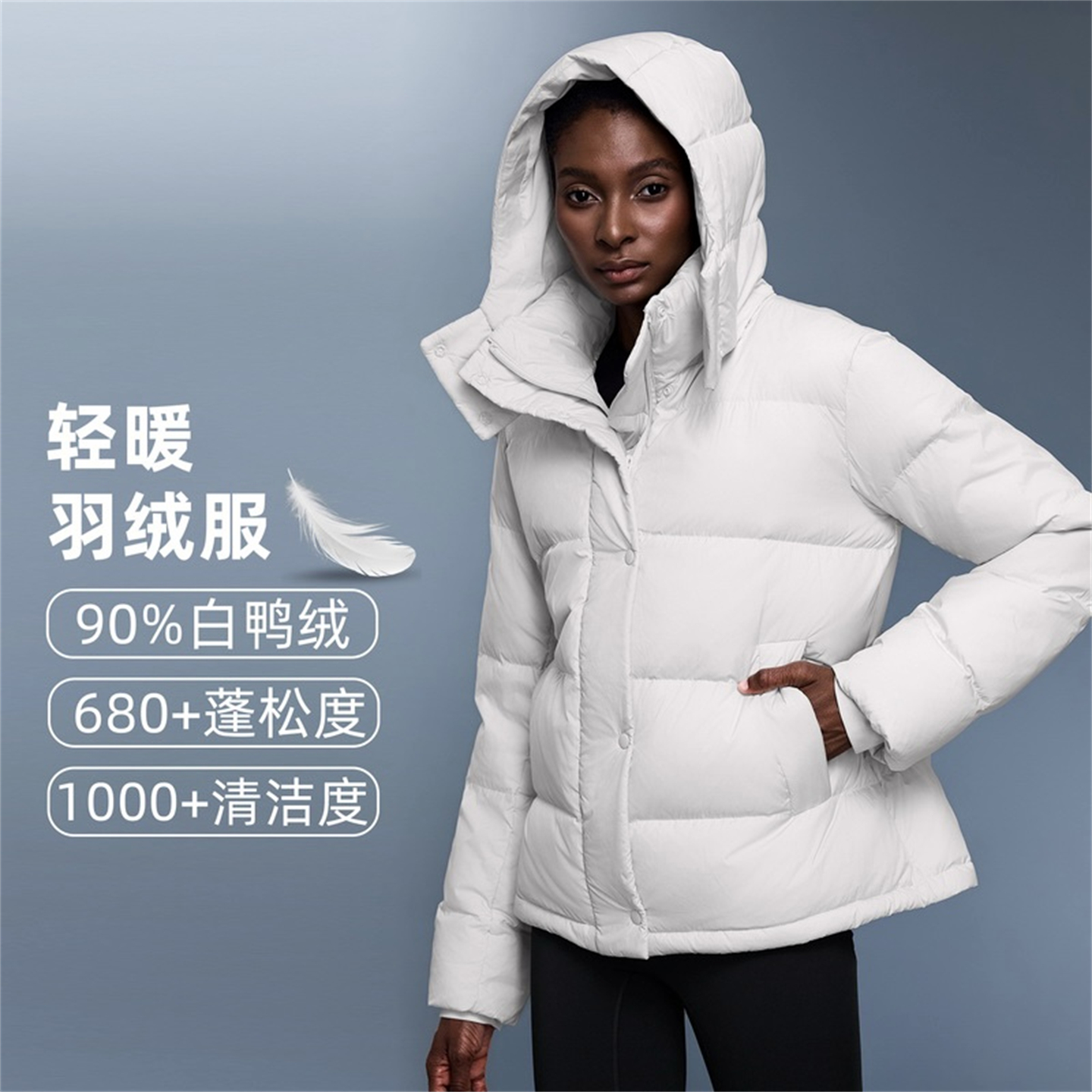 Li Ning hot pot down jacket丨Women's new winter hooded cropped top, duck down clothes, women's warm sports jacket