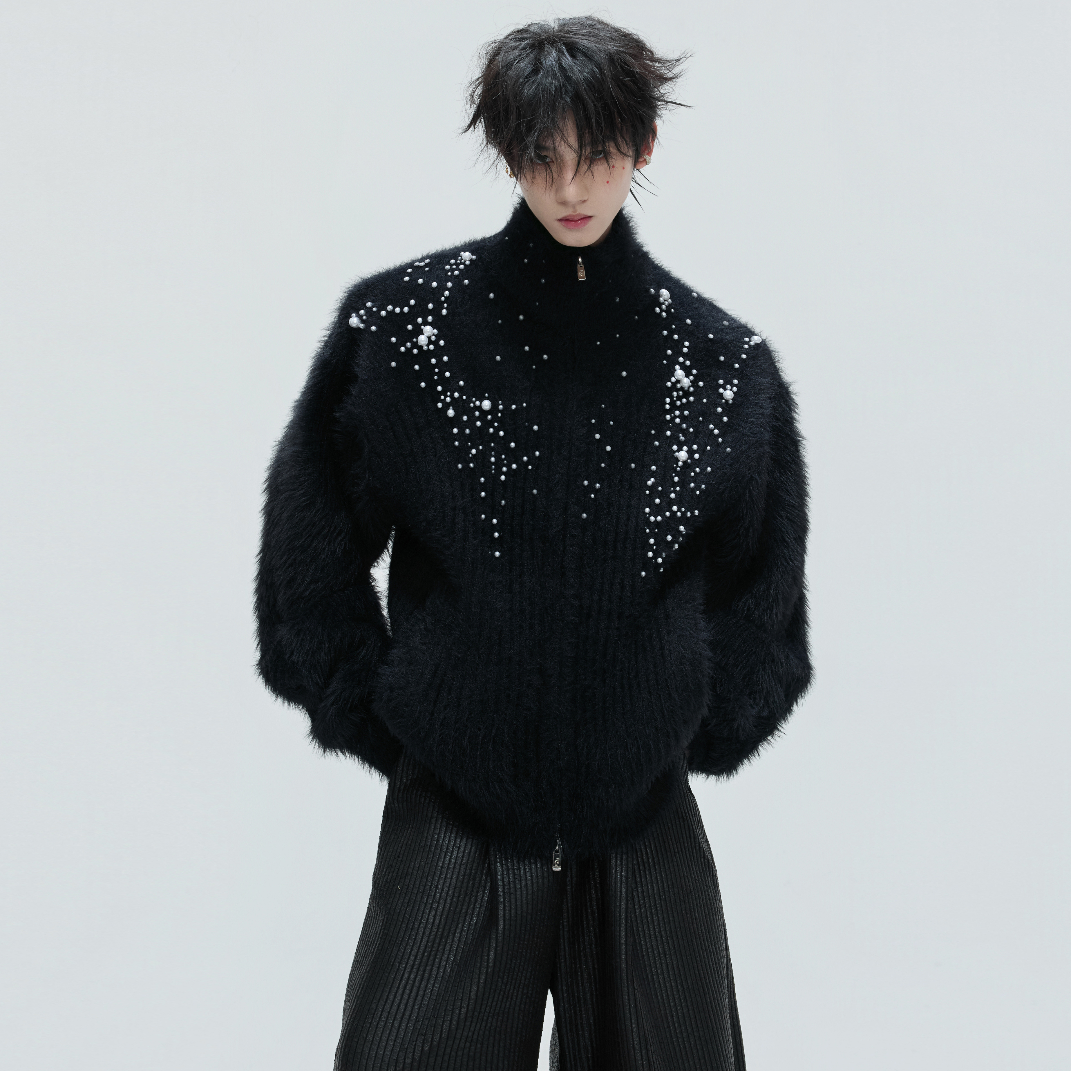 ArguE CulturE turtleneck plush pearl embellished sweater cardigan luxurious thickened knitwear