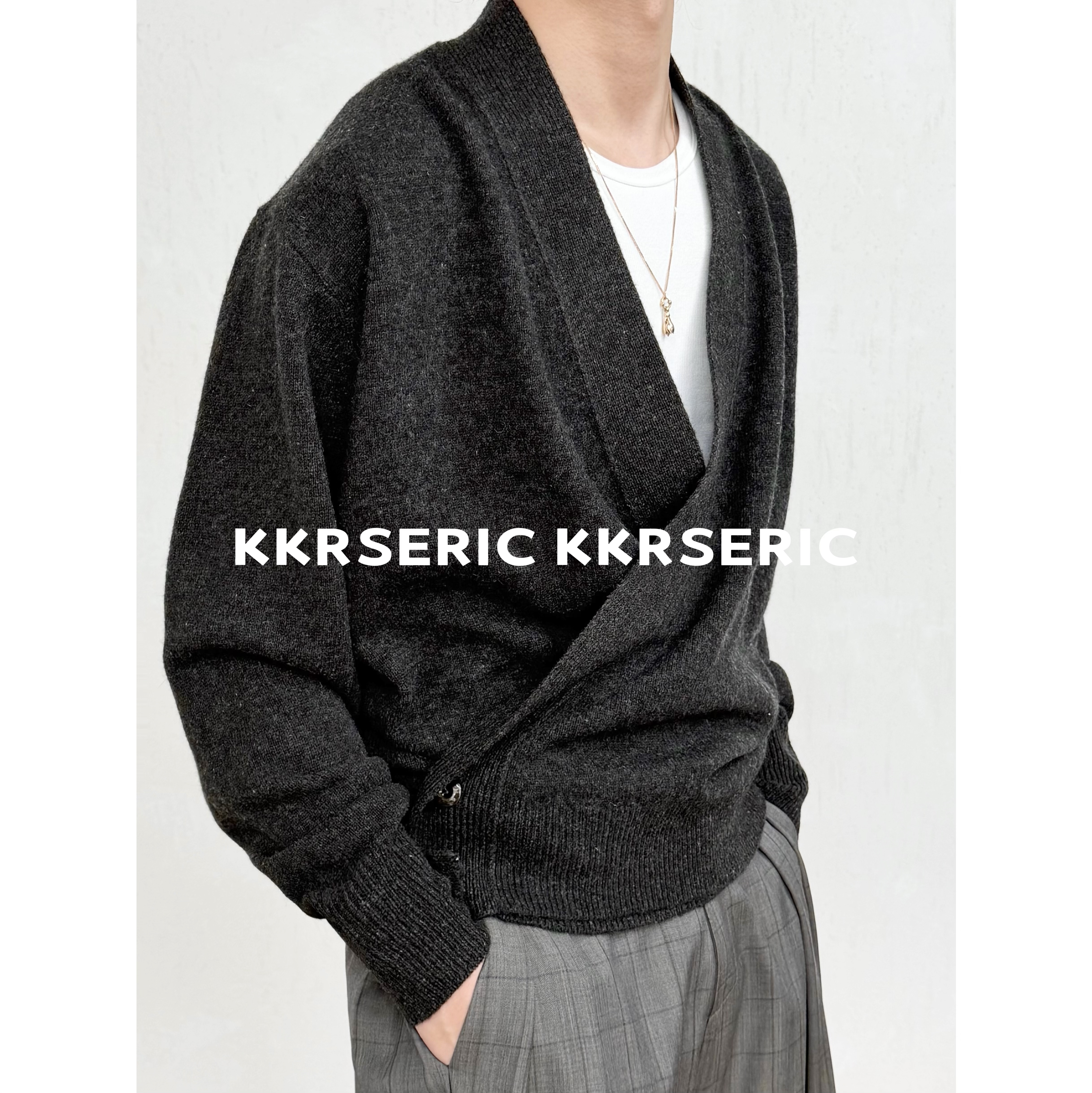 KKRS ERIC 100% Australian Coarse Needle Wool Lem Style Custom Woven Floral Yarn Diagonal Button Cardigan Sweater