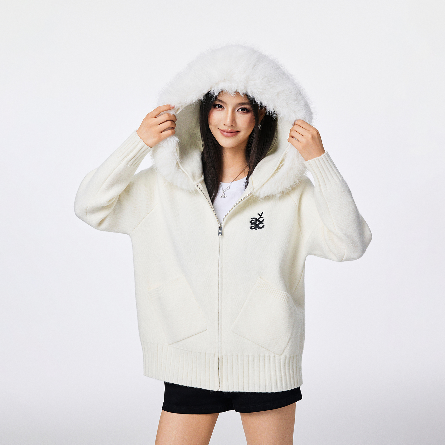 [Achock official store] Cream-style fur-collar hooded sweater soft and waxy gentle knit fall and winter jacket