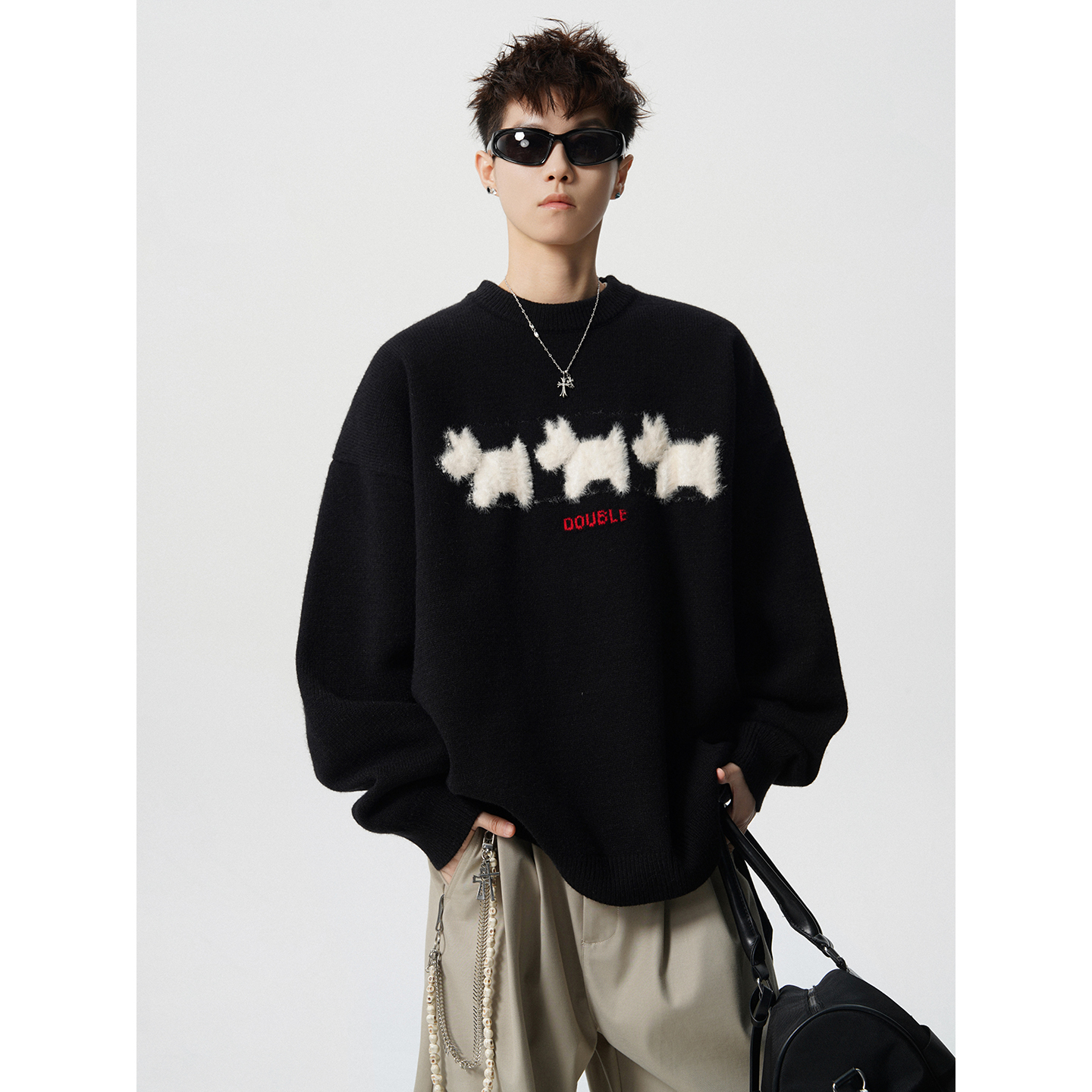 American puppy flocked crew neck sweater for men and women, new winter trendy brand loose and lazy style couple knit top
