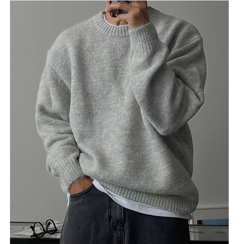 American thickened warm soft waxy knitted sweater men's autumn and winter with a lazy base sweater and loose crew neck liner