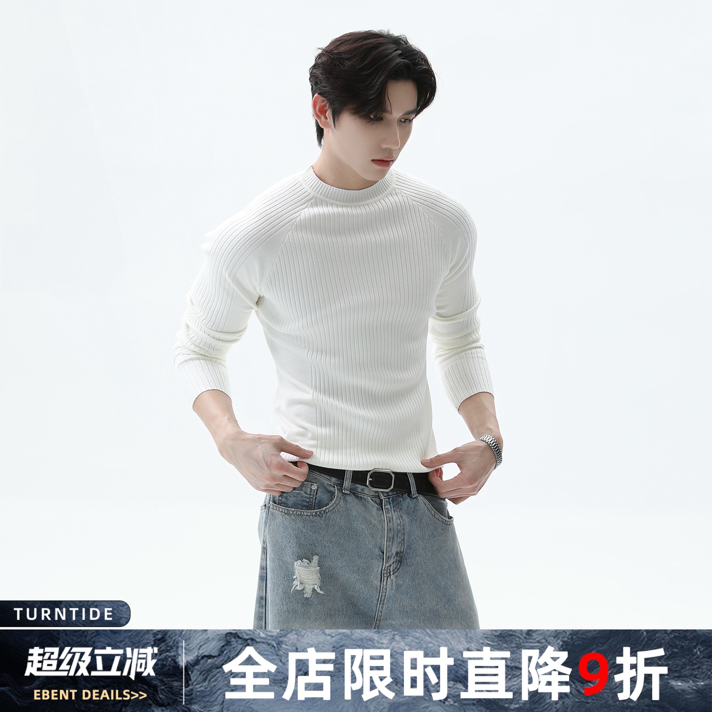 TURNTIDE high-texture, minimalist construction raglan sleeves, slim-fitting knitted pitted strip long-sleeved T-shirt with an undershirt