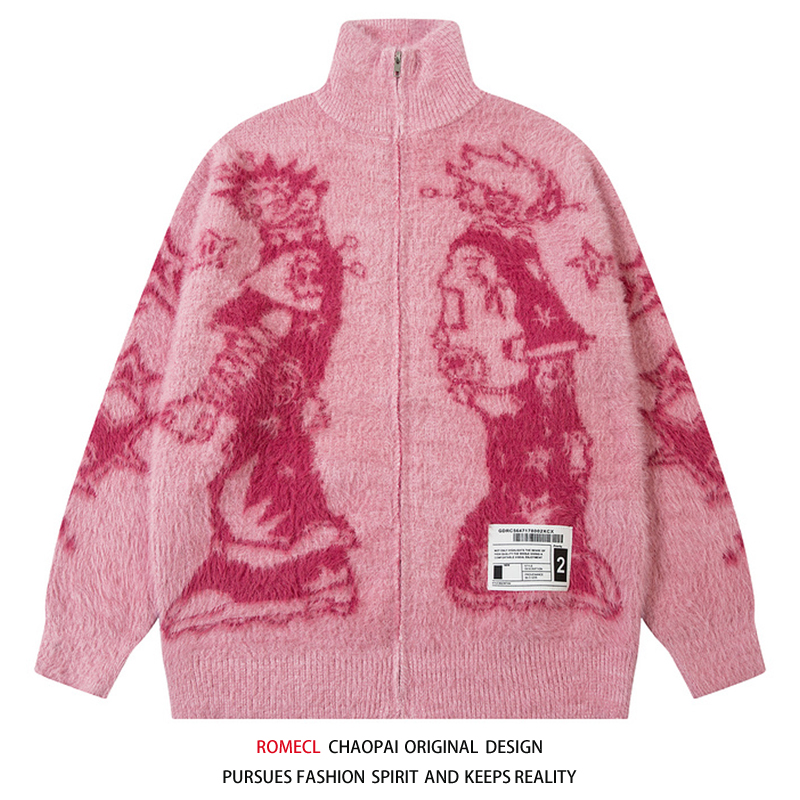 ROMECL Autumn/Winter atmosphere individuality casual abstract jacquard cardigan sweater men's and women's couple loose knit jacket