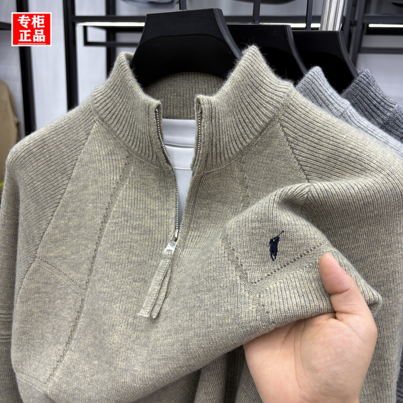 TZG (Jinge Iron Horse) gray RL semi-turtleneck zipper sweater men's old money style lazy feeling thickened knitwear