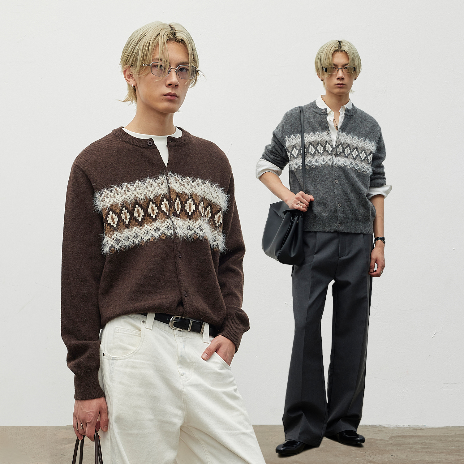Fair Isle wool-blend jacquard knit cardigan sweater is versatile and intelligent TERRAINCOGNITA25AW style