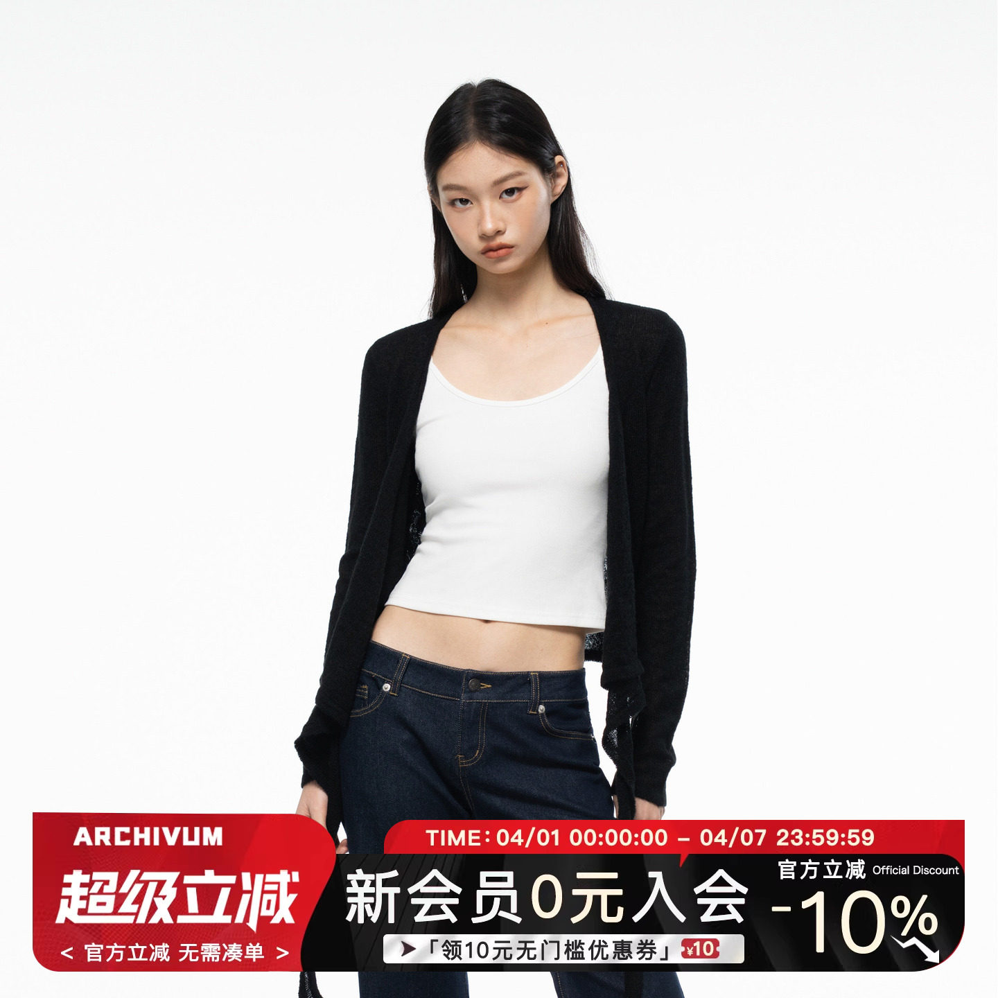 Archivum American Knit Long Sleeve Spring & Summer Loose Collarless Versatile Strappy Cardigan Real 2-Piece Suit Top