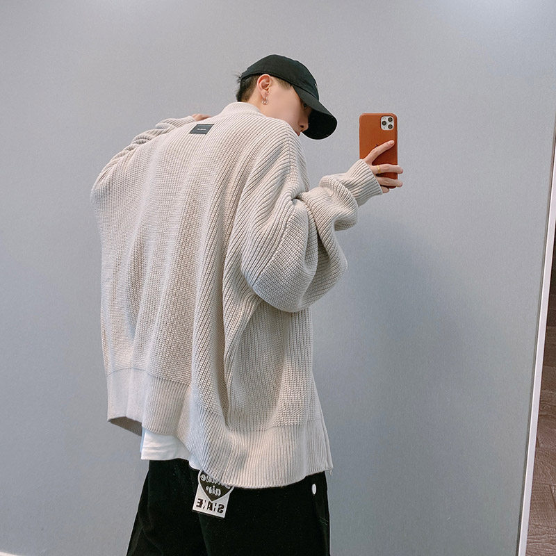 dannyandzee spring national tide high street loose dropped shoulders lazy zipper knitted sweater cardigan jacket men's INS