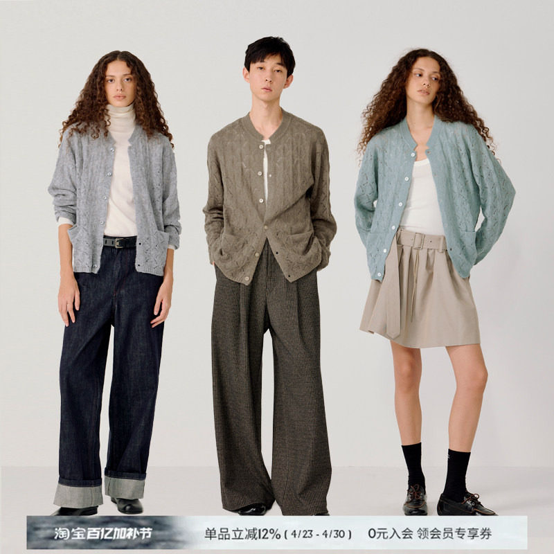 【Green Label】haonanhuang 7 needles 16 counts 100% pure wool coarse needle texture soft and waxy fluffy sweater cardigan