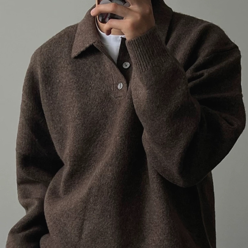 Old money style core spun yarn knitted polo shirt men's American retro long-sleeved sweater soft and waxy breathable sweater Paul shirt trend