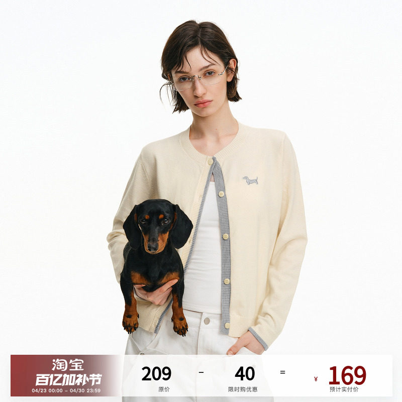 PCLP placket contrast wool cardigan spring and autumn trendy brand retro slimming versatile wool knitwear button-down sweater jacket