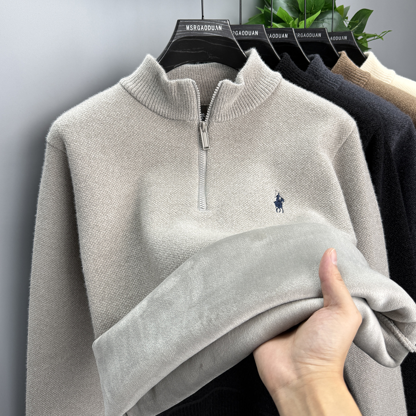 Winter chenille sweater men's fleece thickened semi-turtleneck zipper warm top base shirt