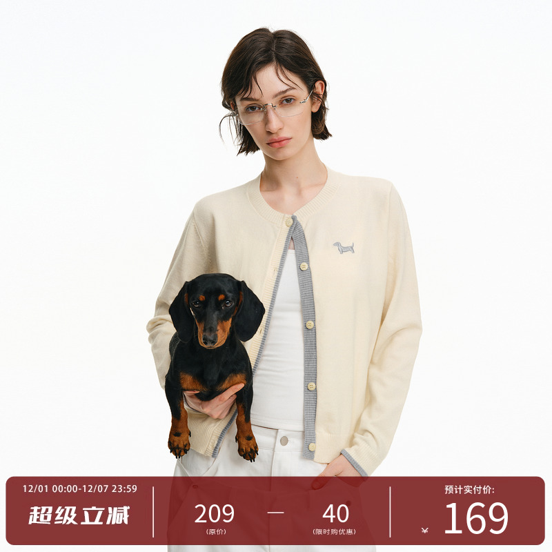 PCLP placket contrasting wool cardigan autumn trendy brand retro slimming versatile wool knitwear button-down sweater jacket
