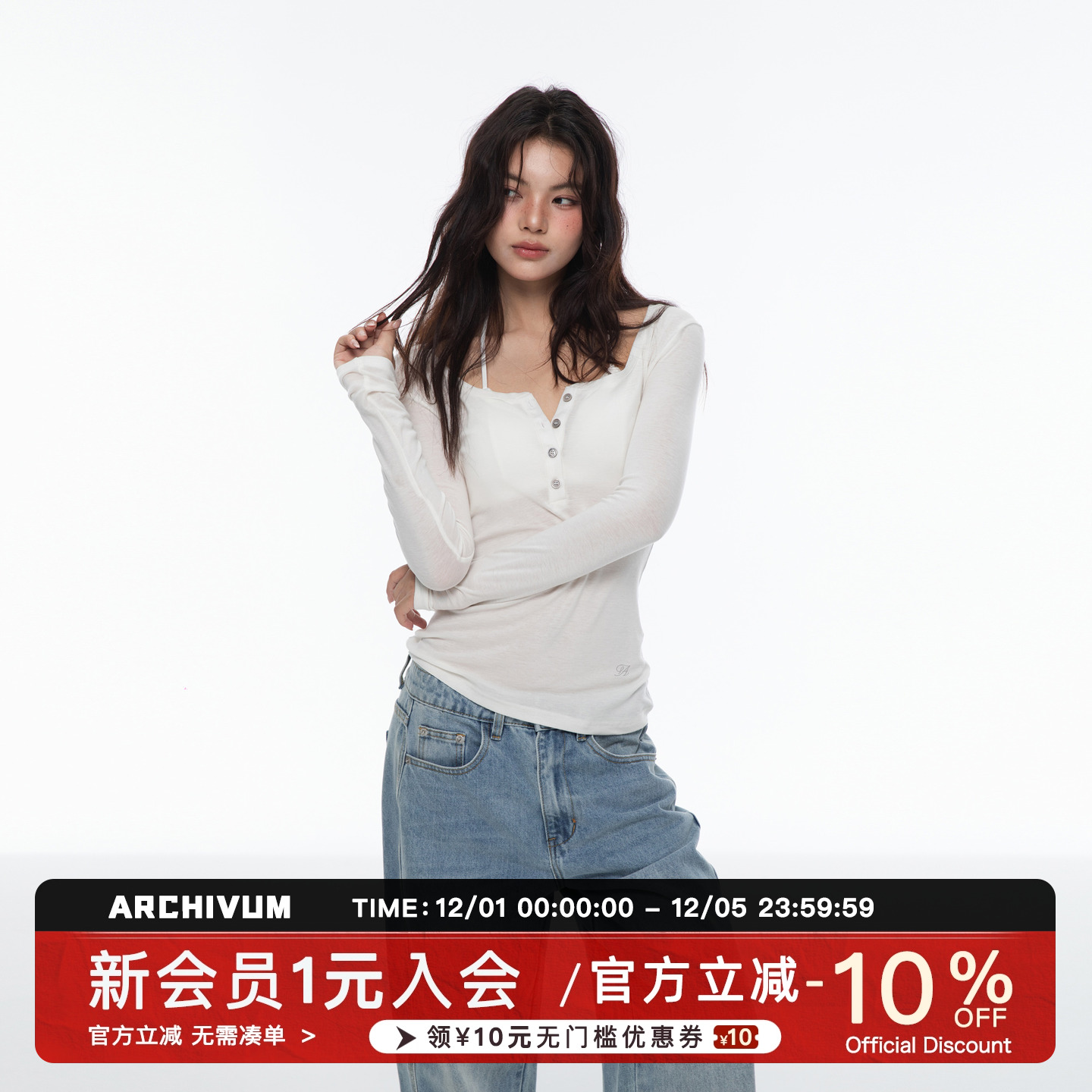 Archivum Lyocell Tencel wool blend U-shaped Henry long sleeve base top slim slim for autumn