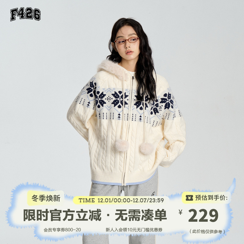 【F426 Official Store】Guochao brand autumn couple versatile hooded fur collar Fair Isle sweater