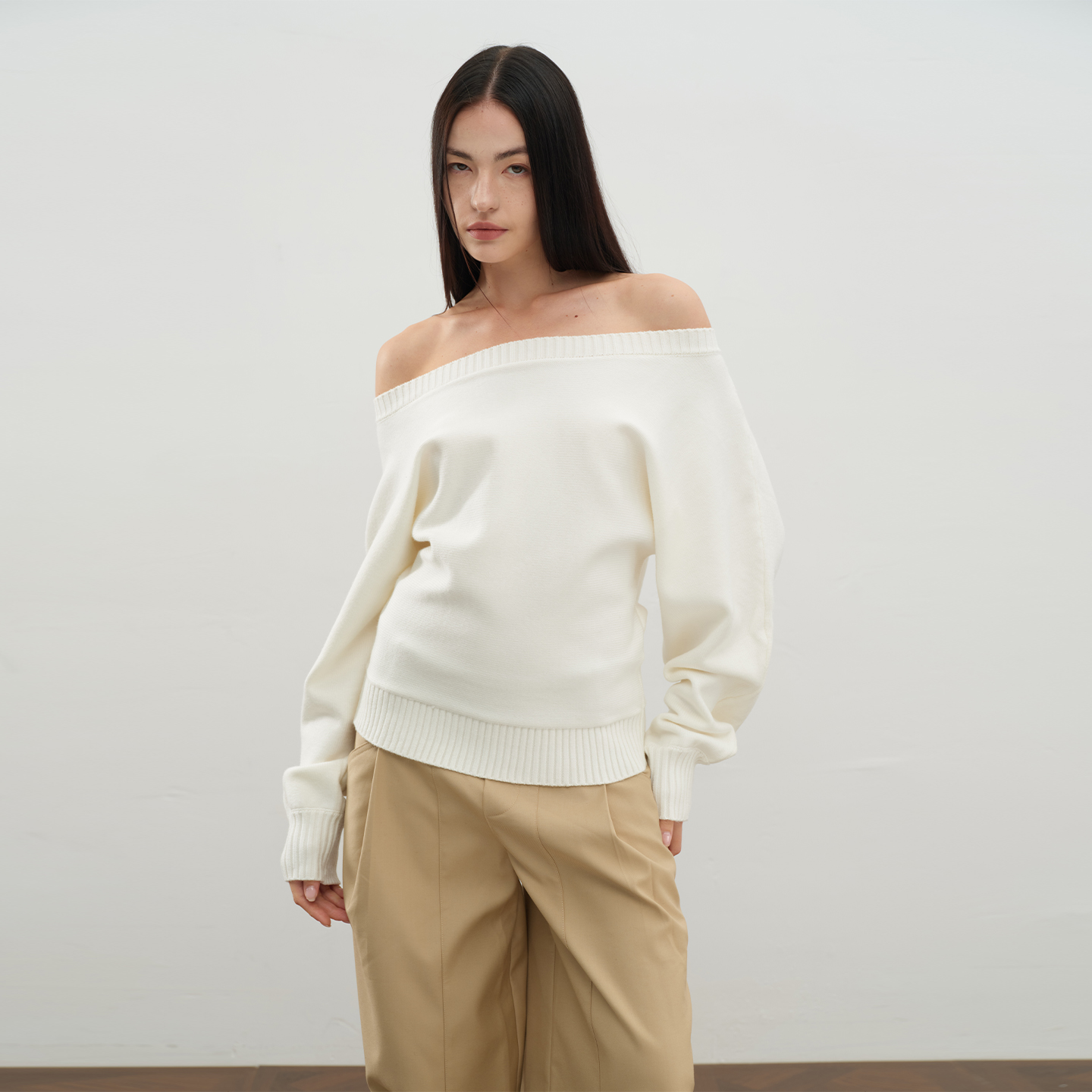 SRIKERLAB loose one-line off-the-shoulder sweater loose sophisticated slanted shoulder knit top thick women's style