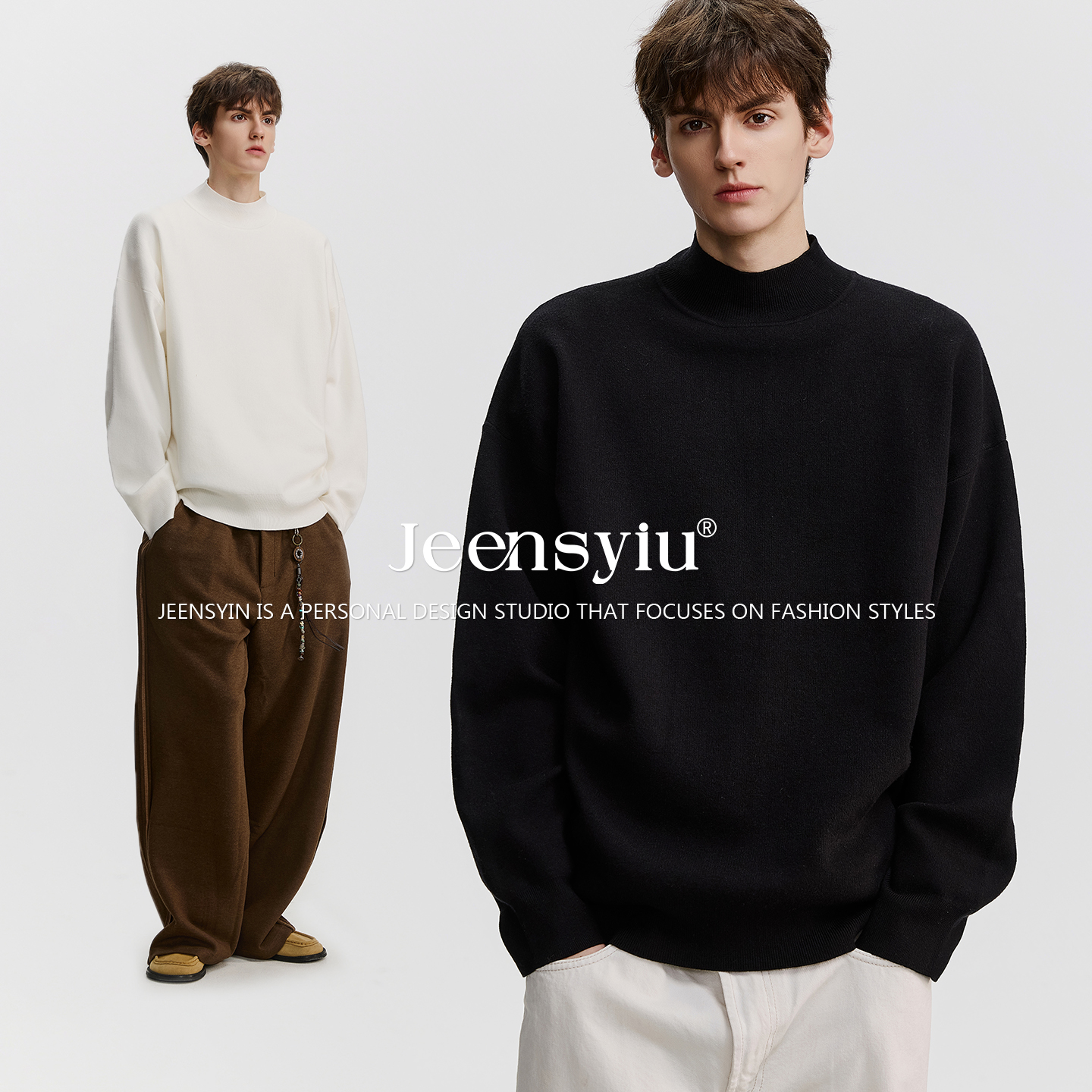 Hengyuanxiang 100% pure cashmere sweater men's semi-turtleneck winter new sweater middle-aged thickened dad base wool sweater
