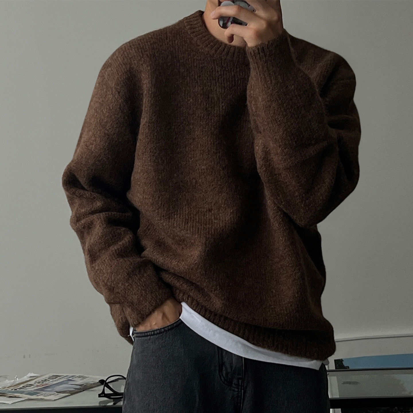 SSUMENAM "Old Money Style Late Autumn Outfit" Brown sweater men's autumn and winter warm casual versatile knitwear