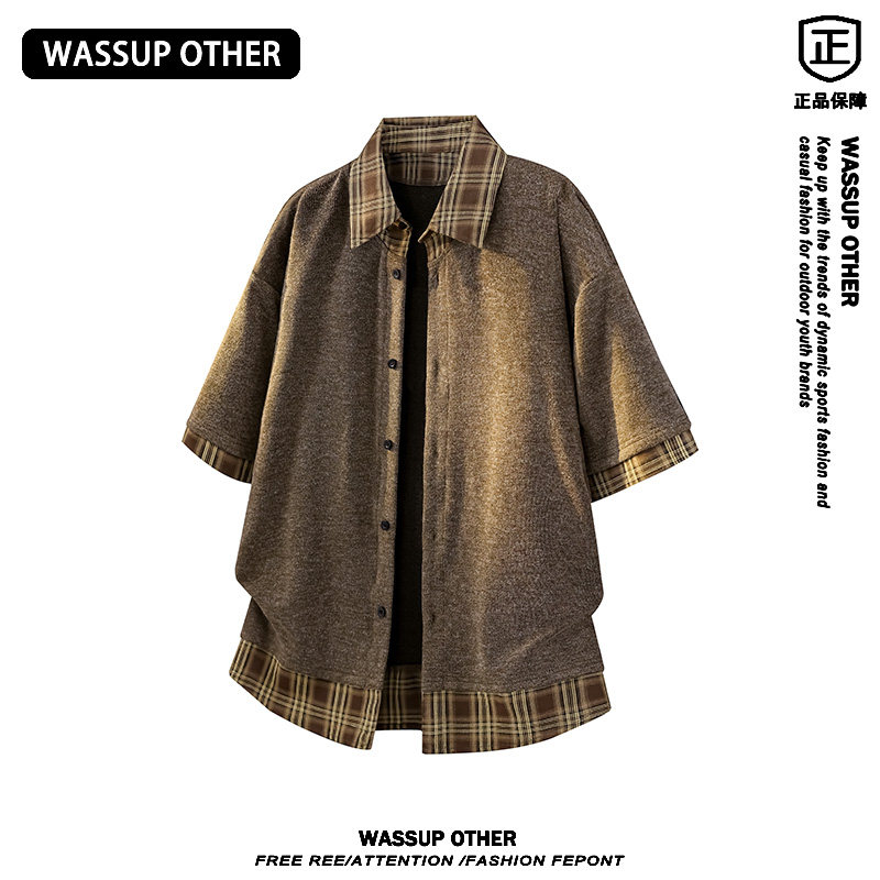 WASSUP OTHER fake two old money style cardigan shirt men's summer loose knit short sleeve T-shirt men's style