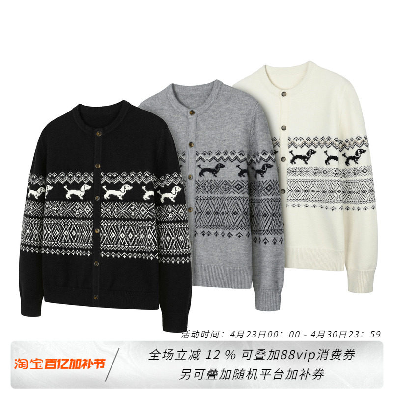 NewDecay dachshund fair island button-down cardigan casual loose lazy knit sweater casual top