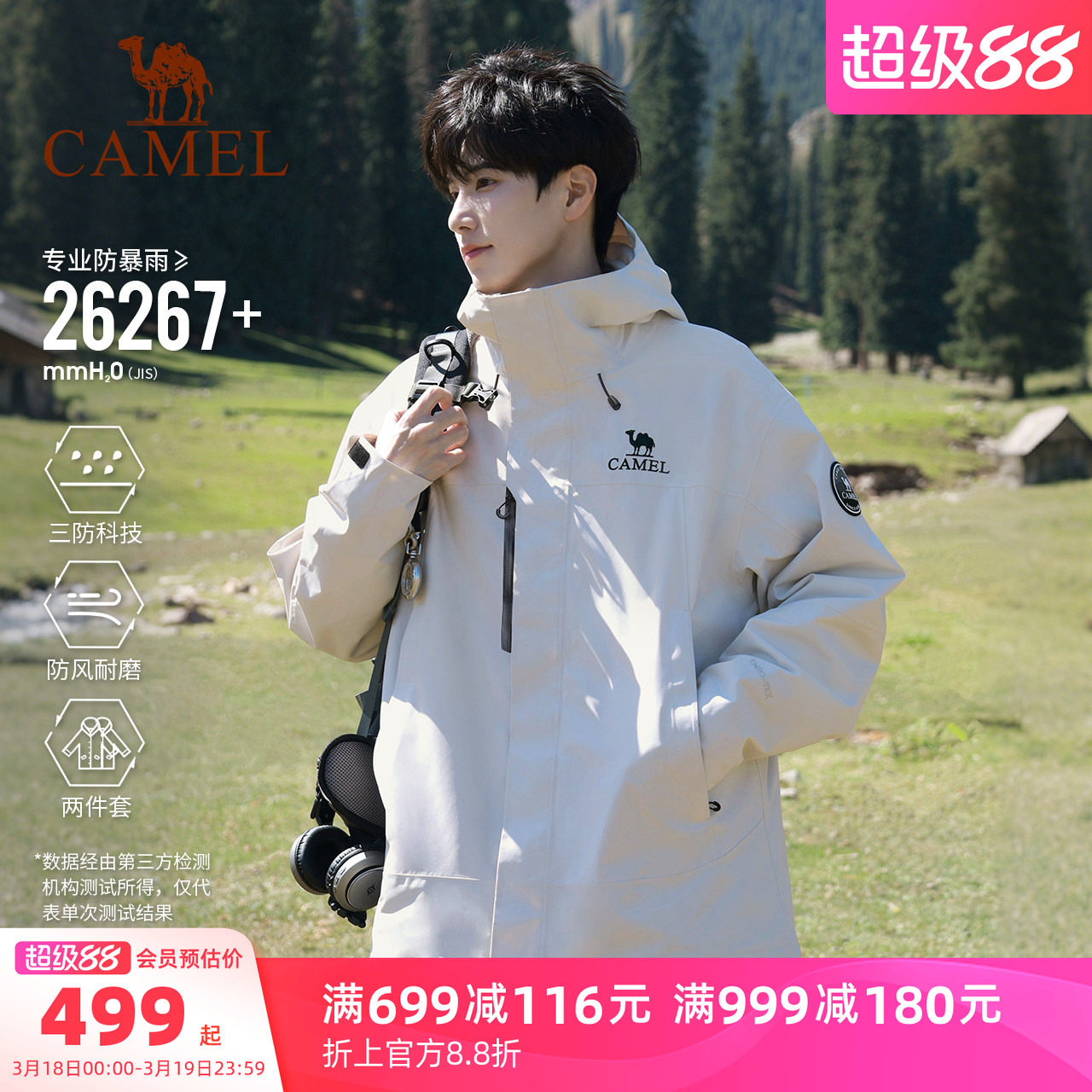 Camel streamer white king kaijia ICON jacket men's three-in-one jacket women's rainstorm waterproof mountaineering suit