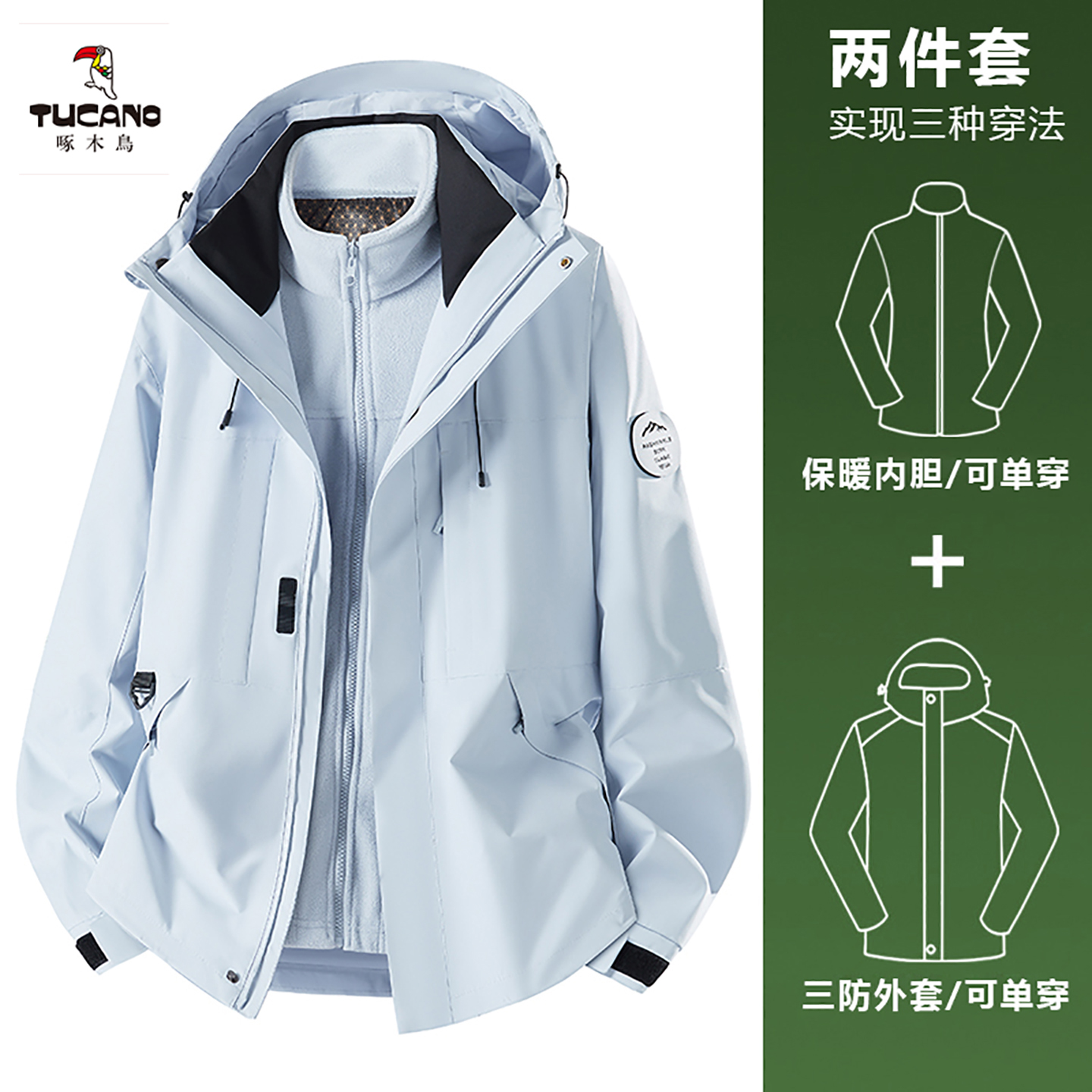 Woodpecker jacket men's and women's 3-in-1 detachable jacket autumn and winter outdoor windproof waterproof fleece mountaineering suit