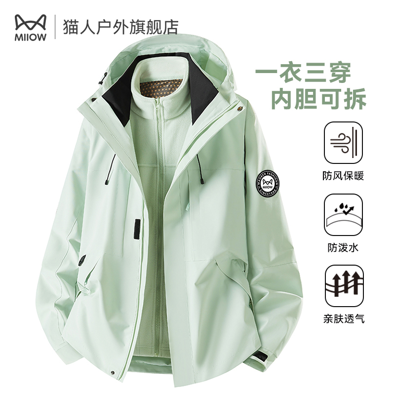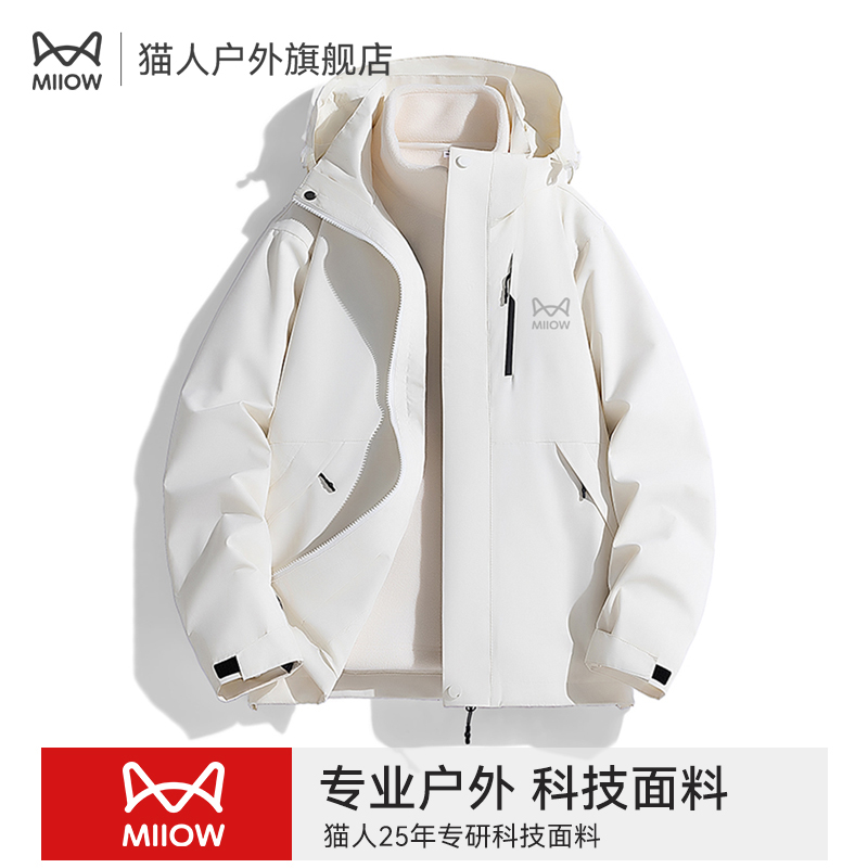 Cat Man 2025 new white three-in-one charging softshell jacket women's autumn and winter small outdoor sports jacket