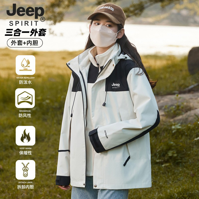 JEEP Outdoor Mountain Jacket Men's and Women's 3-in-1 Detachable Jacket 2025 New Windproof and Waterproof Autumn Clothes