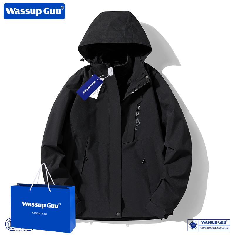 WASSUP GUU Jacket Men's and Women's Trench Coat 3-in-1 Detachable Waterproof Outdoor Mountaineering Clothing Down Jacket Trendy