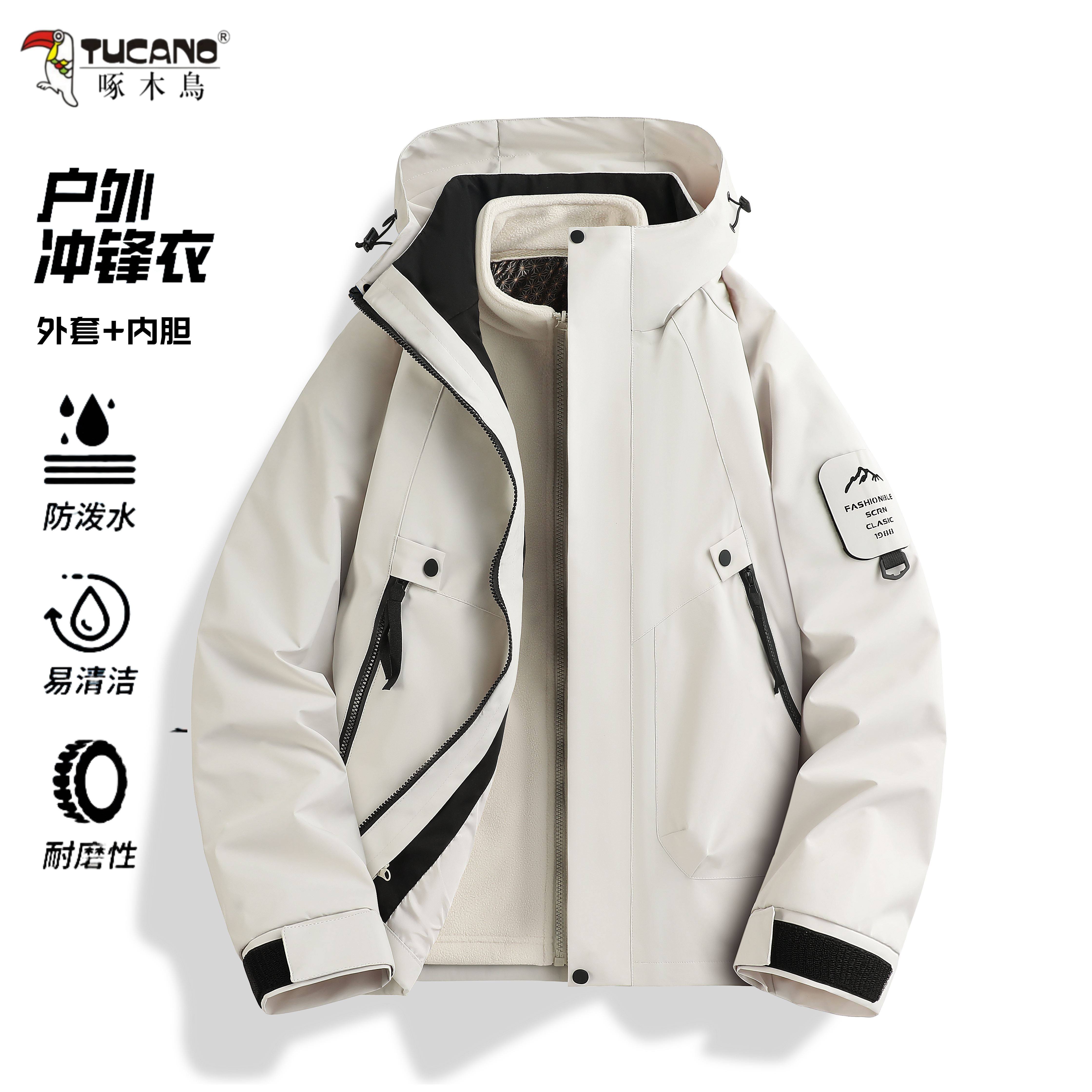 Woodpecker jacket 3-in-1 men's and women's outdoor windproof waterproof mountaineering suit couple detachable warm jacket