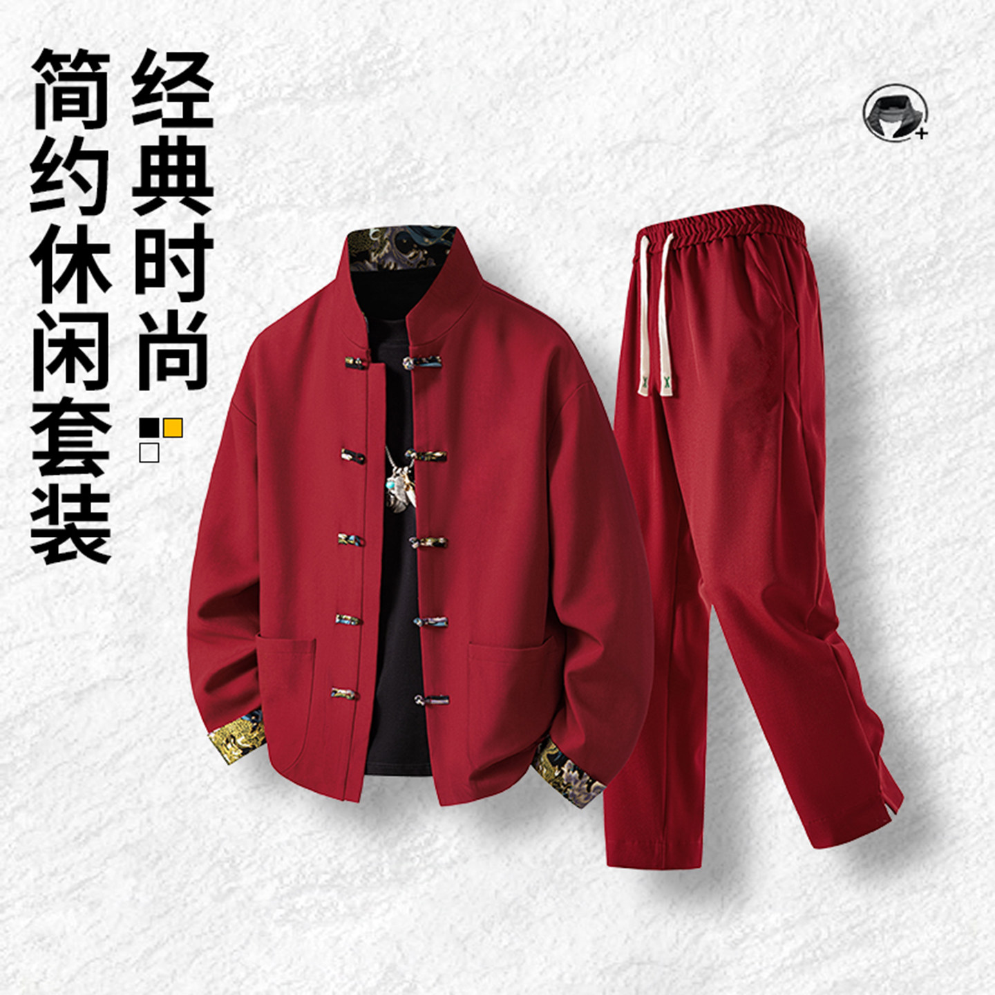 Chinese style national trend fashion suit men's winter casual new Chinese Tang suit top pants loose two-piece Hanfu