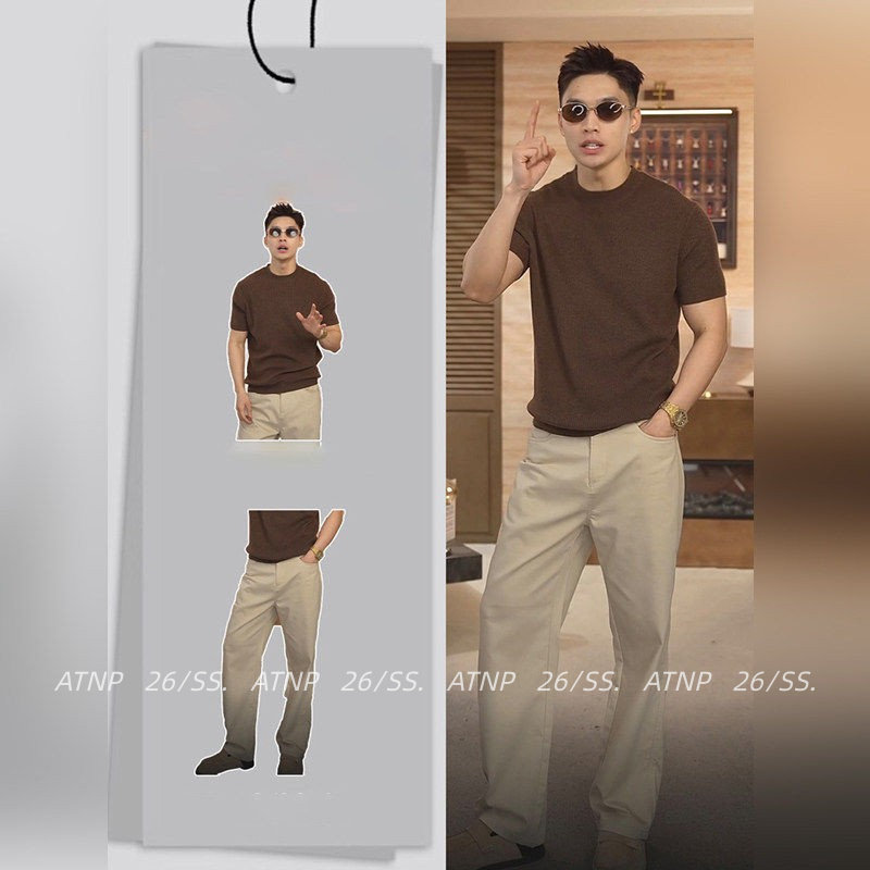 Light luxury old money style ice silk short-sleeved knitwear with slacks men's 2026 summer commuting outfit is a complete set